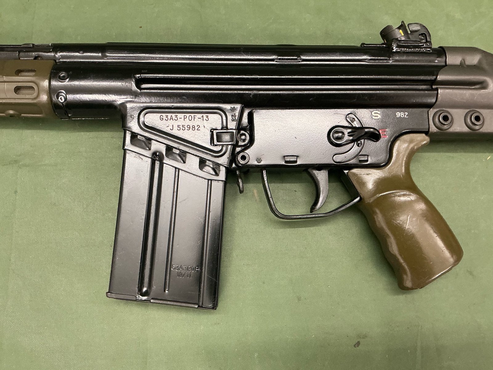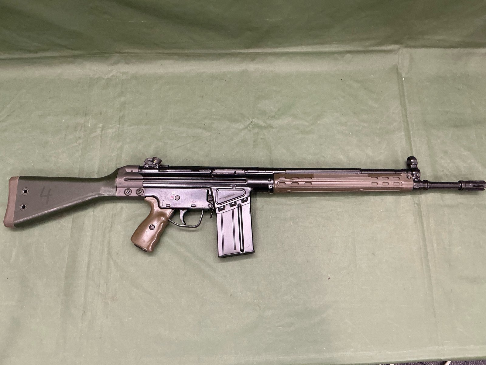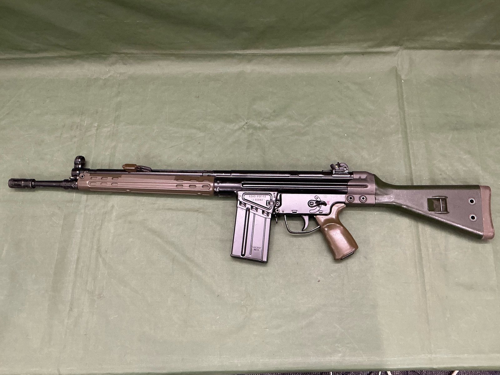 Deactivated G3 assault rifle with full moving bolt under spring pressure and moving trigger, moving selector and detachable magazine almost mint condition, comes with EUGB deactivation certificate.