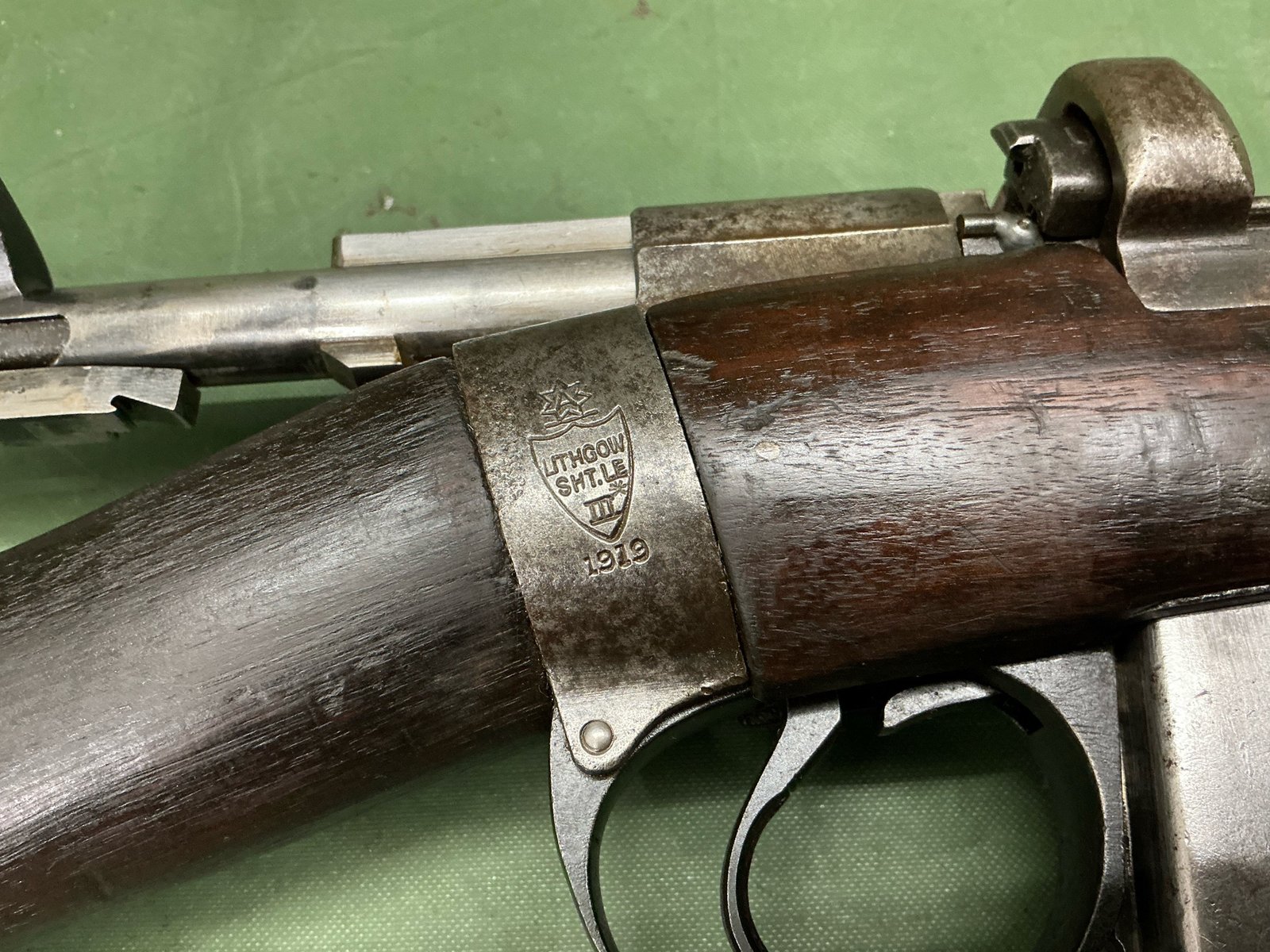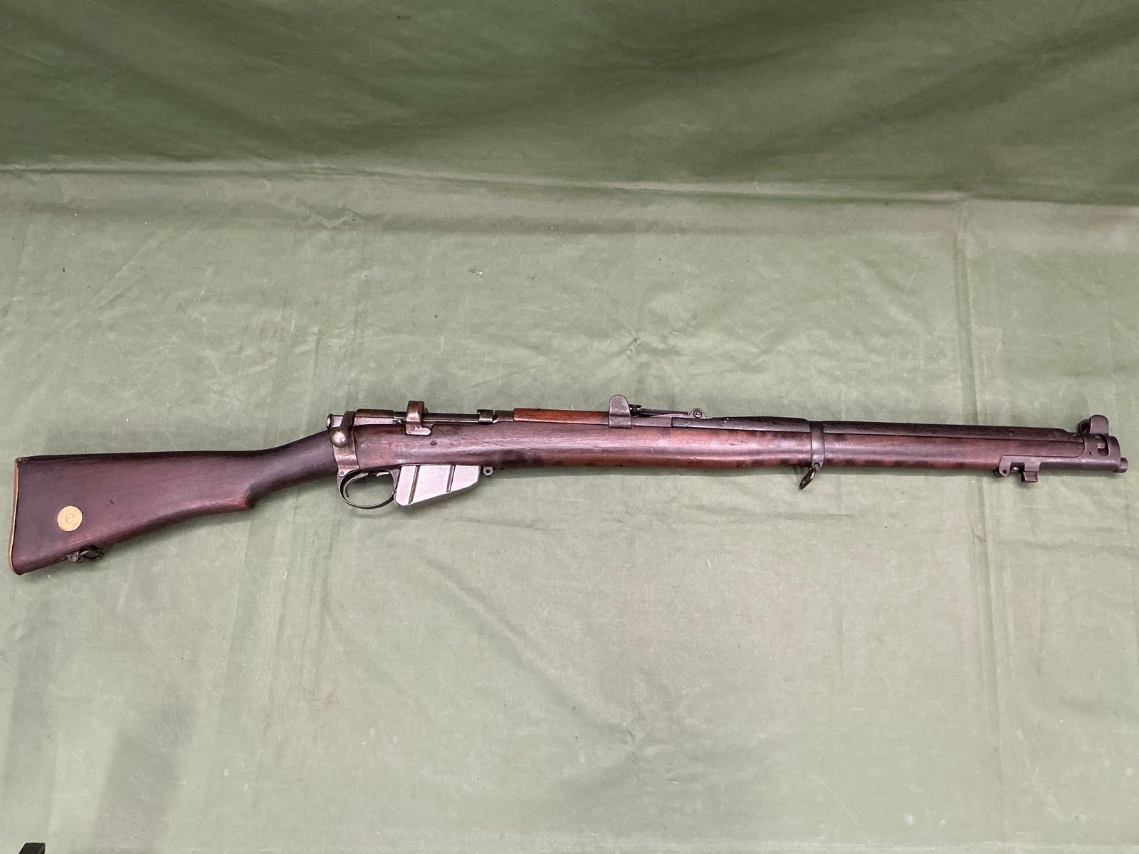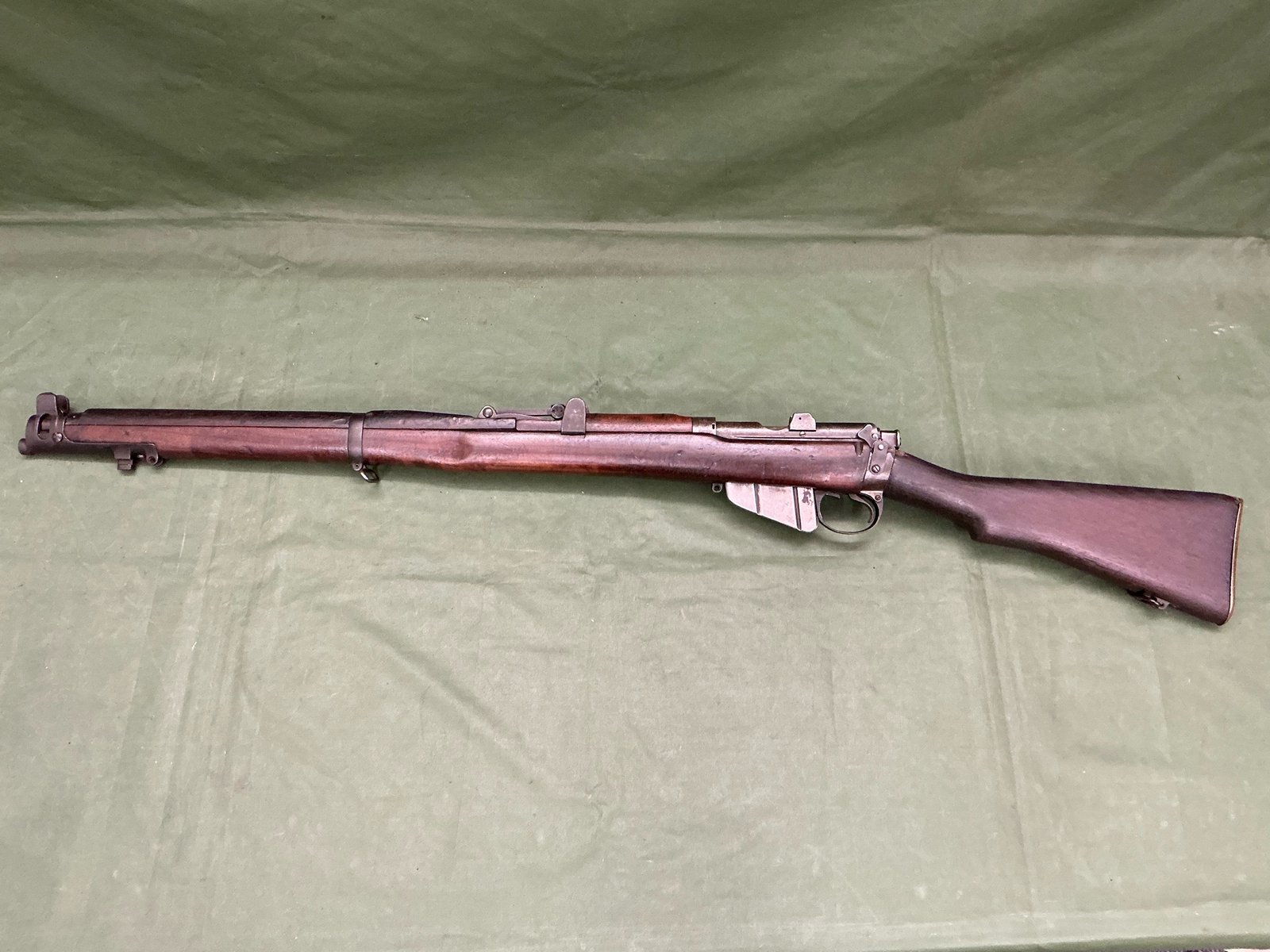 Deactivated Short Magazine Lee Enfield rifle dated 1919 and made by the Australian Lithgow factory ,still has early shaped forewood,although the woodwork is in used condition it is still retaining the ears to the top woods,has moving slide,moving trigger and detachable magazine,does not dry fire, comes complete with EU/GB deactivation certificate.