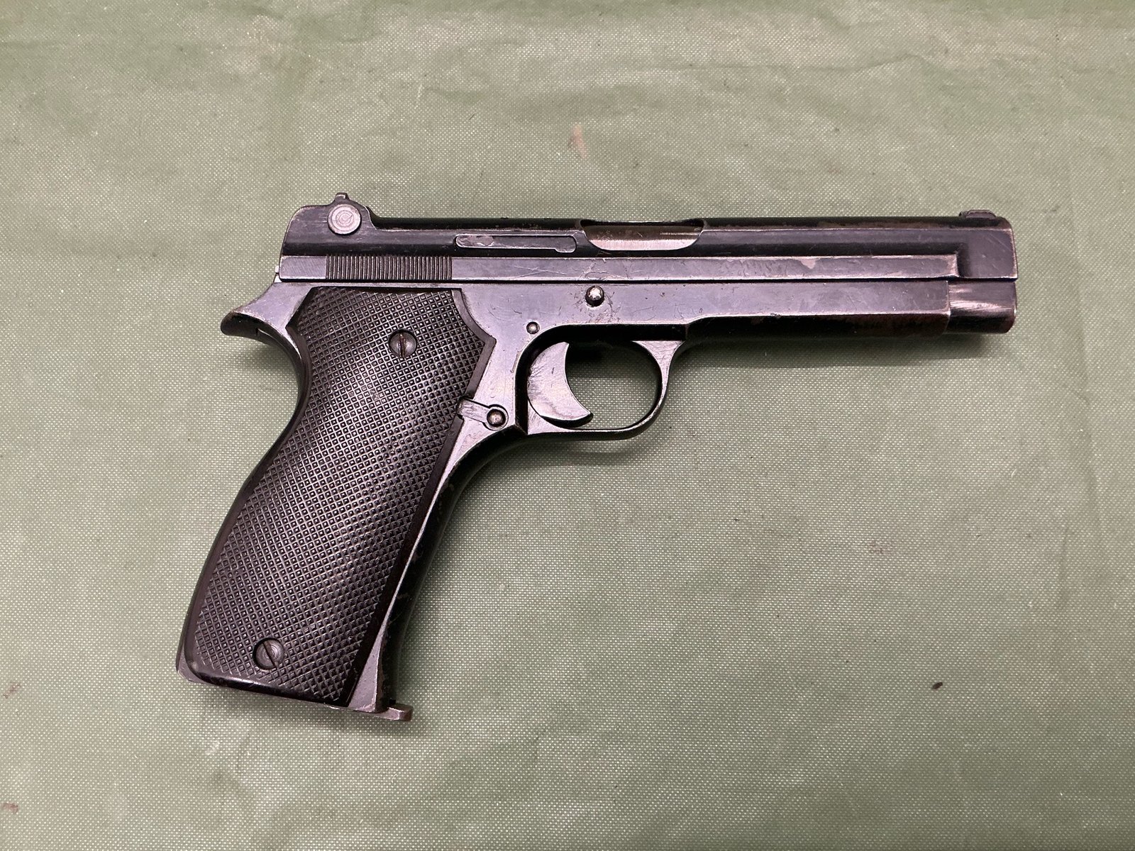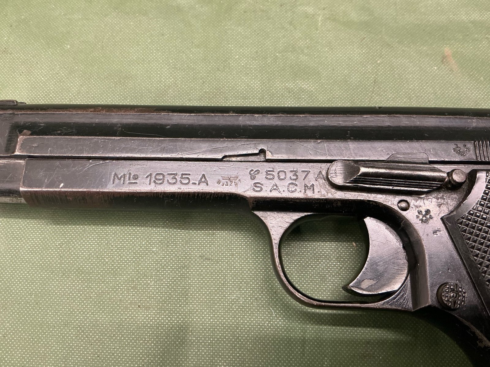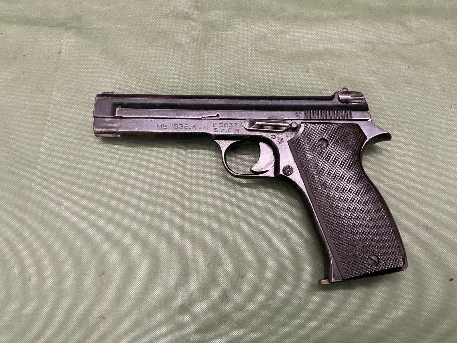 Deactivated WW2 French model 1935A pistol with German issue waffenampt marks, a scarce and hard pistol to find ,cocks, strips and dry fires deactivated in 2001 and comes with GB reissue deactivation certificate dated 2026?