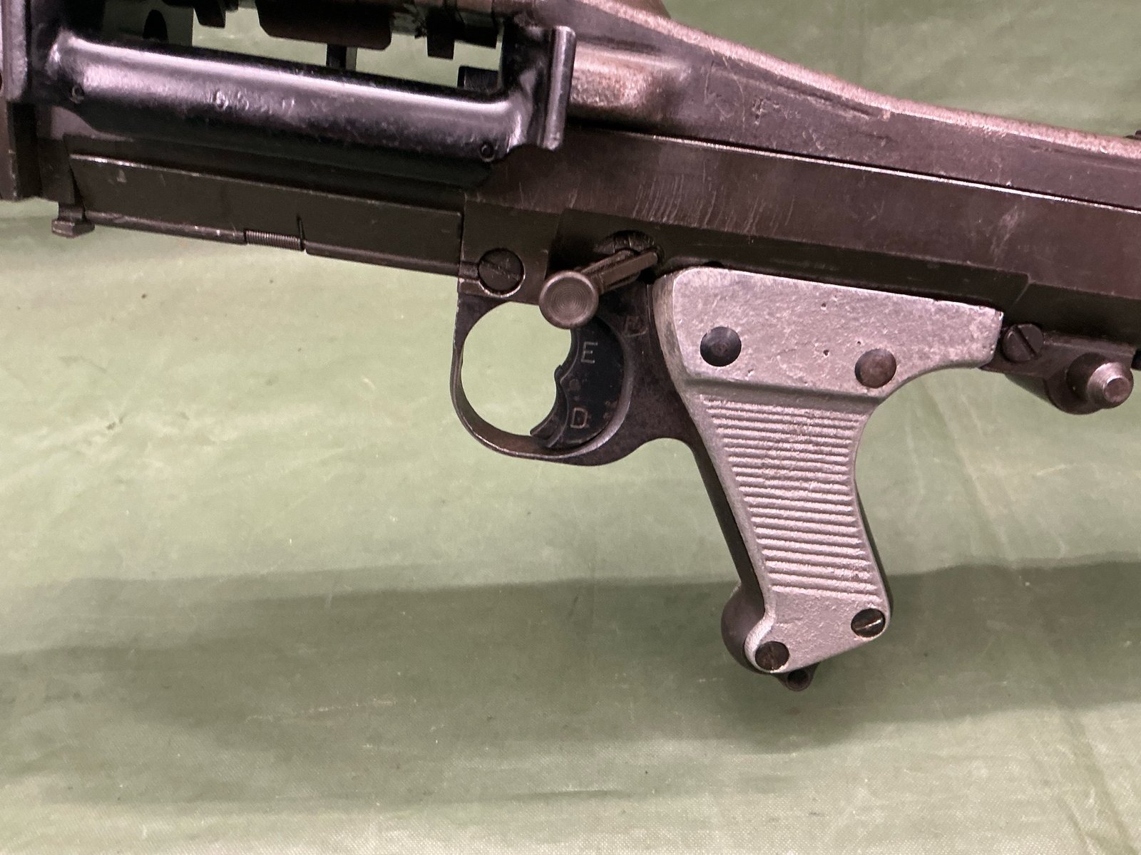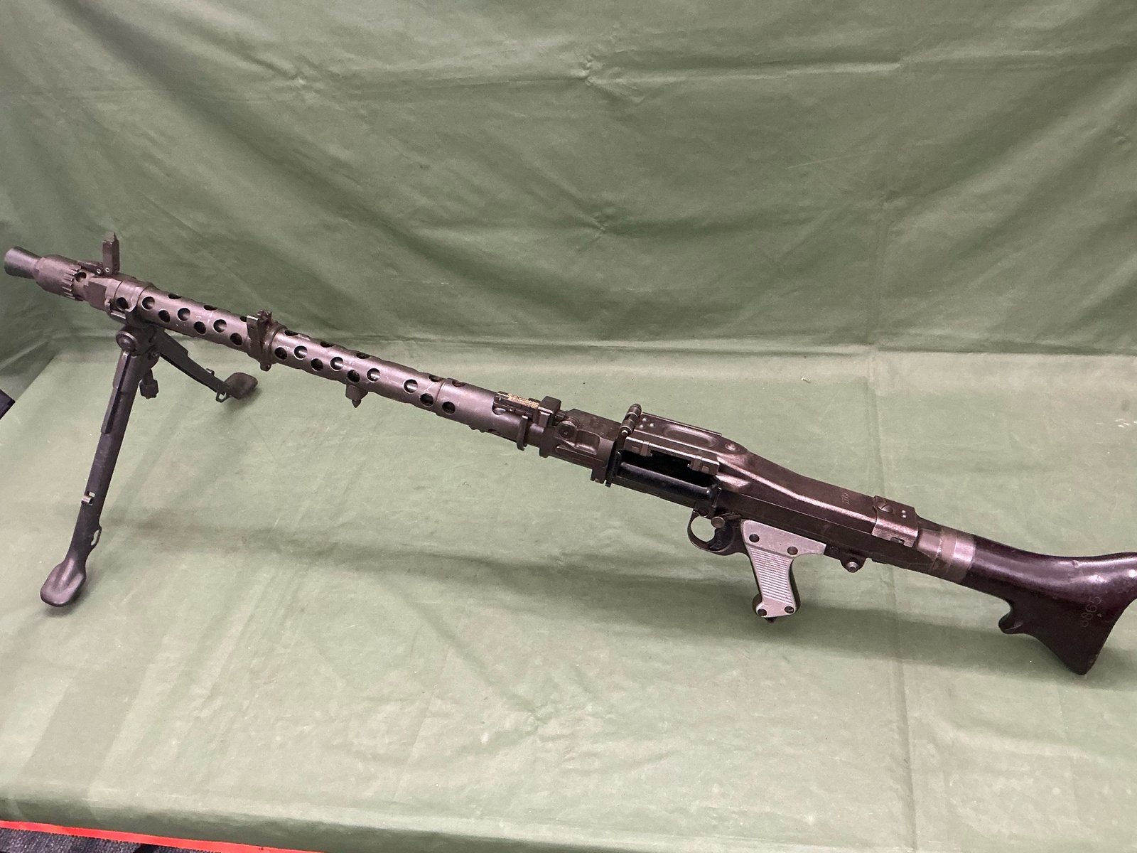 Deactivated World War II German MG 34 machine gun dated 1945 and maker coded DOT has the winter aluminium grip panels non-matching numbers ,cocks,strips and dry fires comes complete with GB deactivation certificate dated 1993.