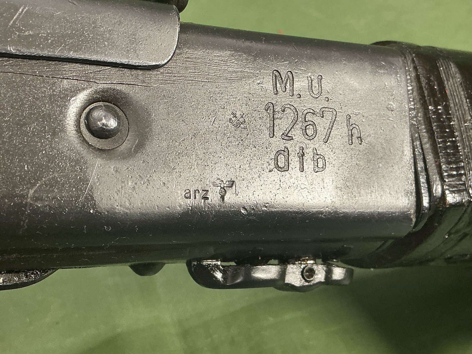 World War II German classic ,the MG 42 machine gun, this example is manufacturing coded ‘dfb’ for the Gustloff werke factory and date coded ‘MU’ for 1944 has matching numbers to receiver and top cover with several eagle swastika stamps and waffenampts,cocks, strips and dry fires comes complete with GB deactivation certificate dated 1999.