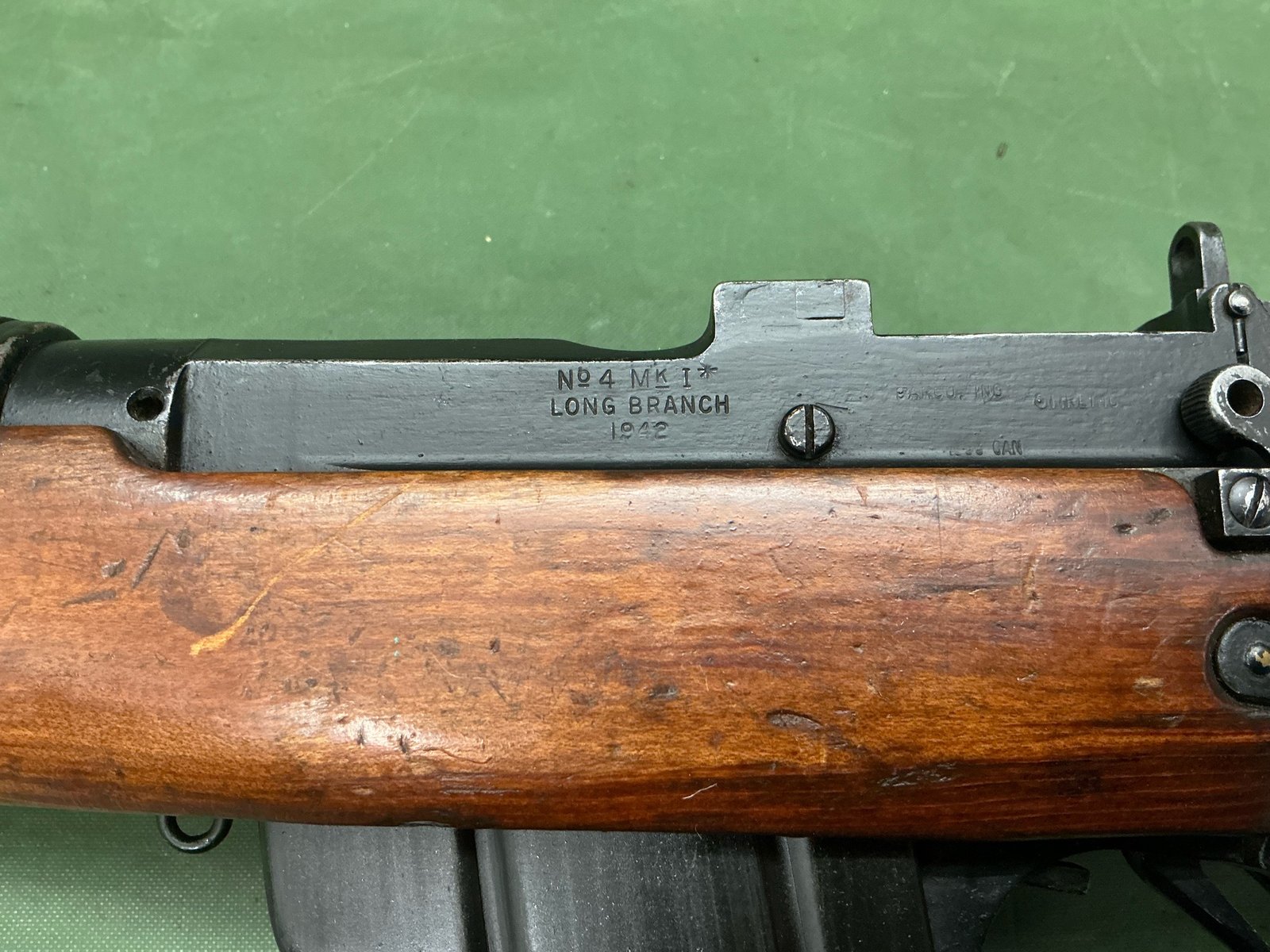 Deactivated World War II classic the Lee Enfield Field NO4 rifle, this example is made at the Long branch factory and is dated 1942 in lovely overall condition. It cocks, strips and dry fires comes complete with GB activation certificate dated 1991.