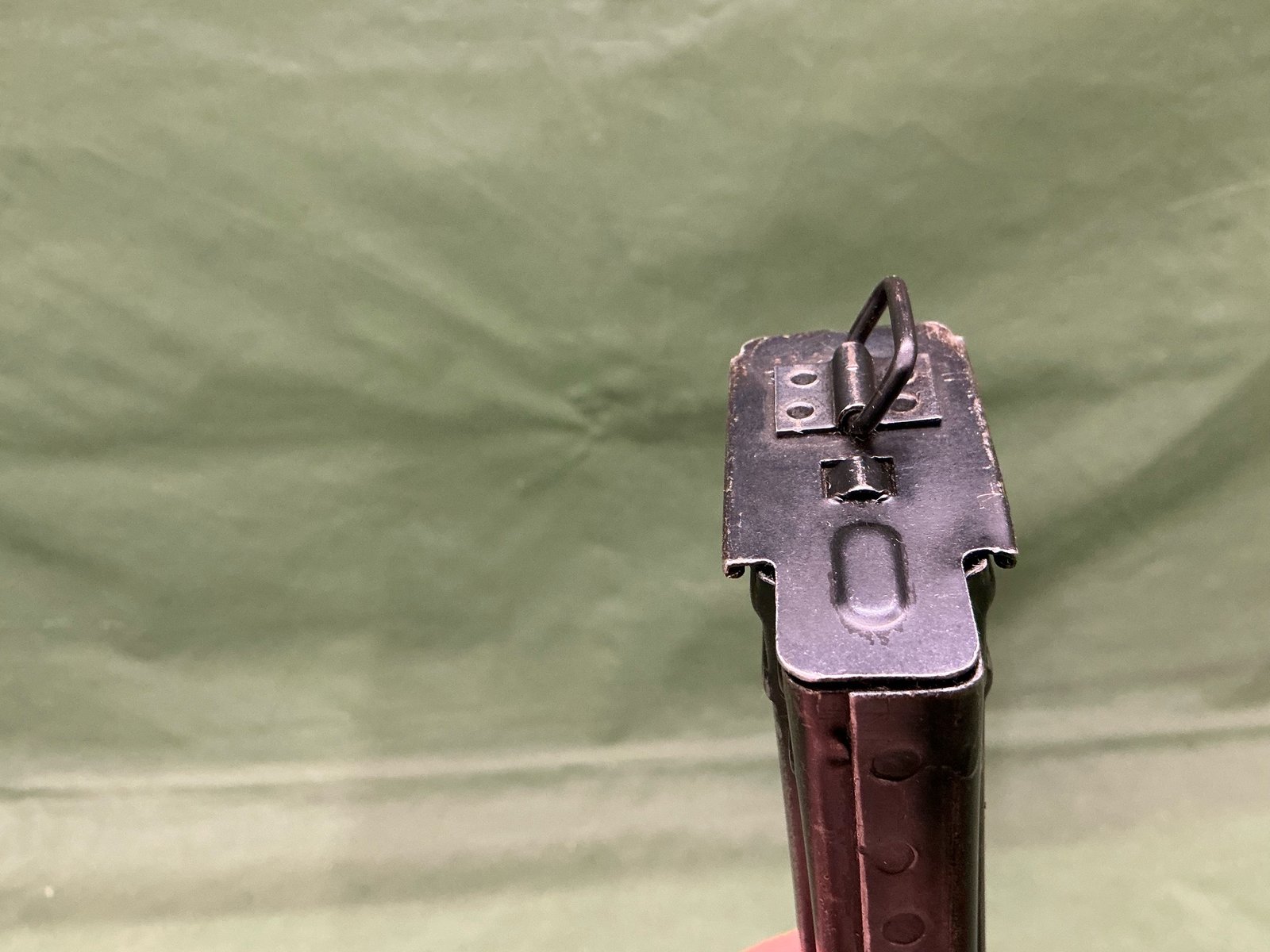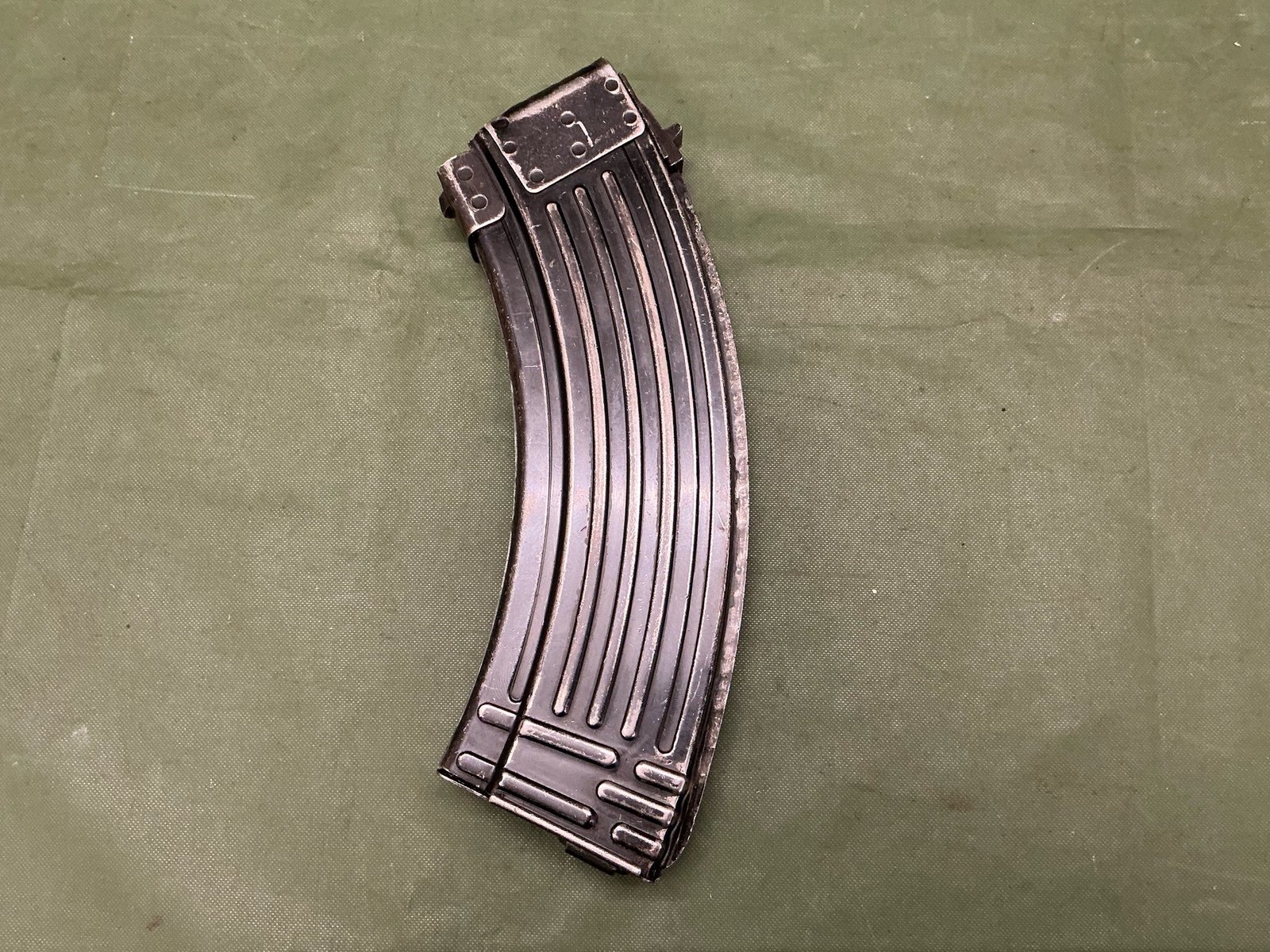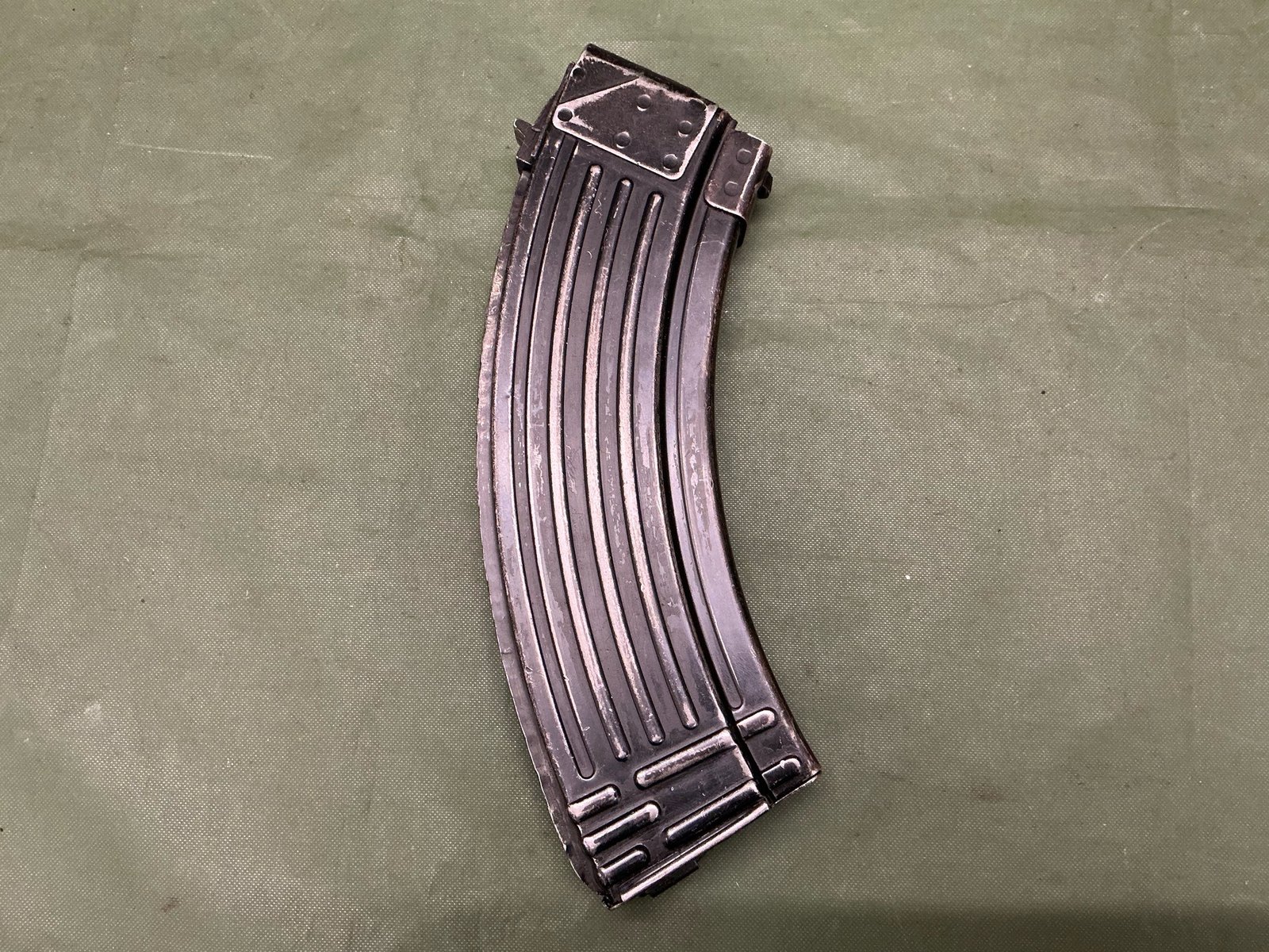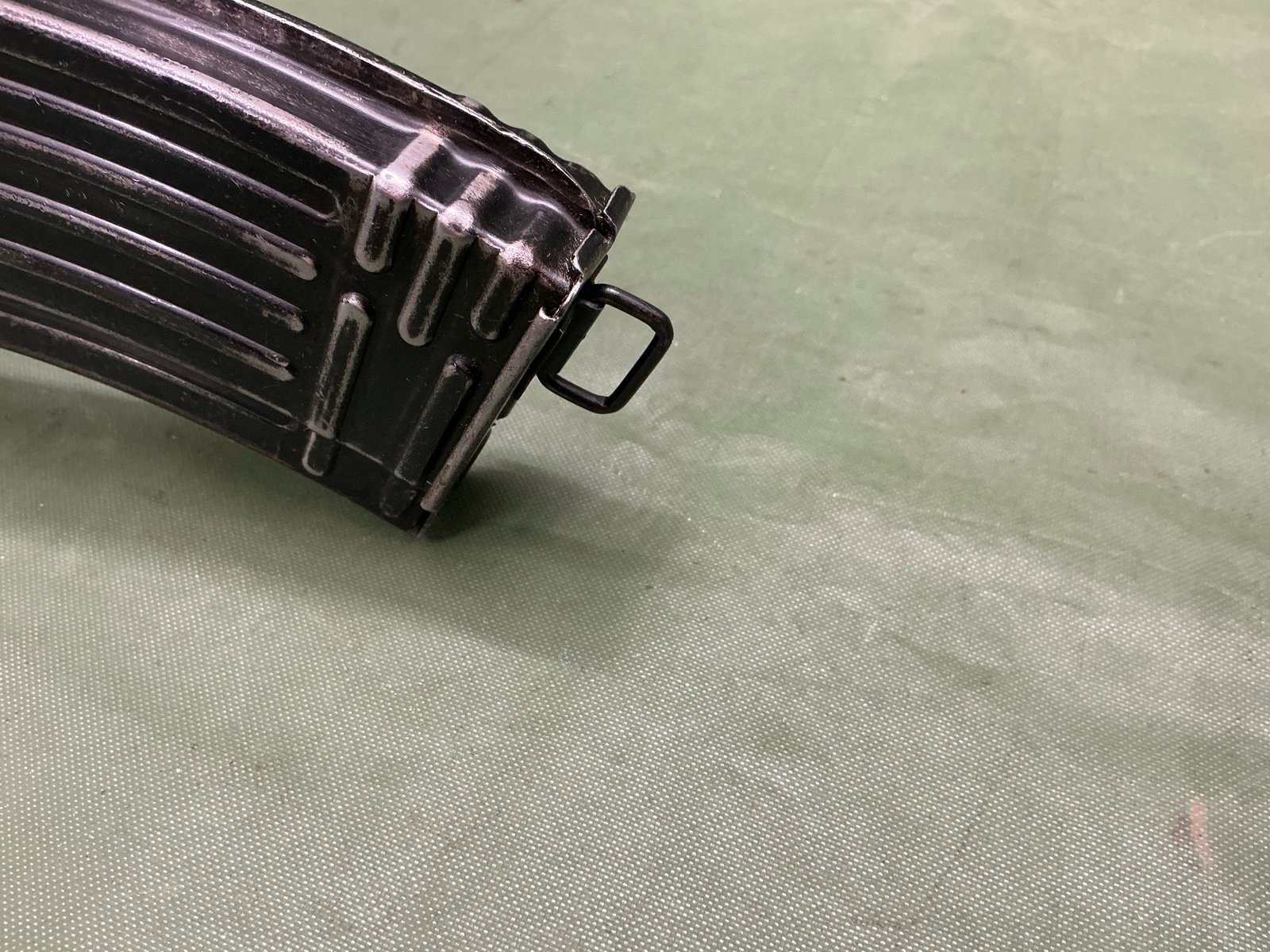 A metal made magazine for the Finnish RK62 AKM assault rifle ,scarce magazine with a unique lanyard loop to the base plate reasonably hard to find.