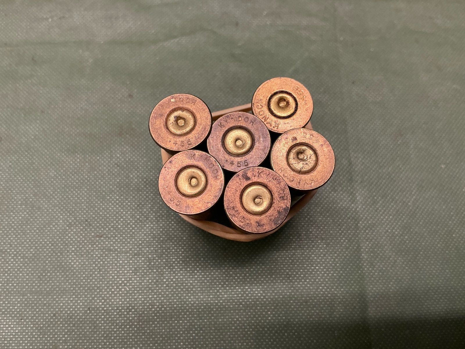 6 X Inert 0.455 lead head projectiles all made by Kynoch these rounds are for the Webley MK6 revolver nice vintage rounds.