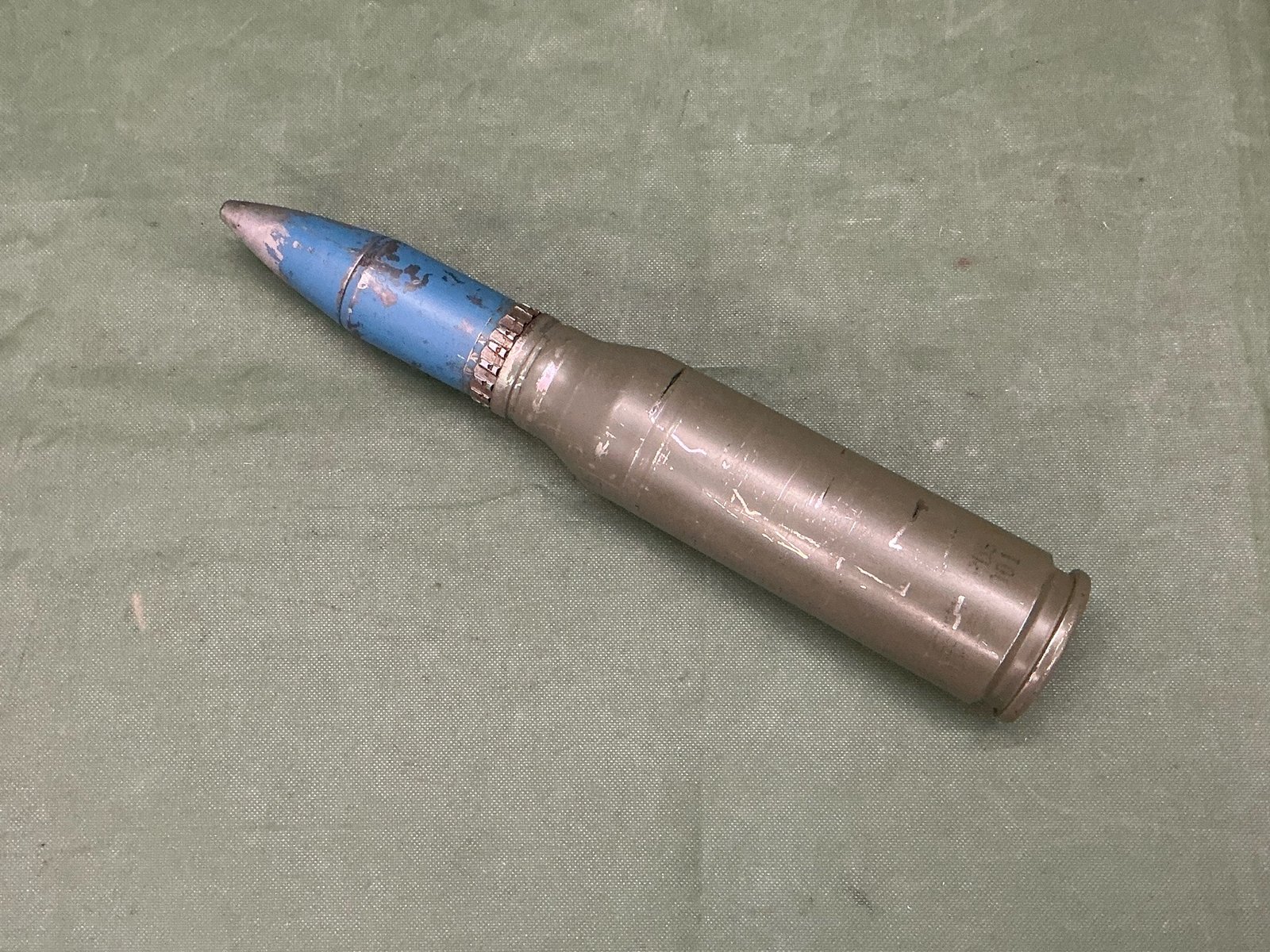 Scarce inert 25MM round from the F 35 Lightning stealth fighter approximately 220mm long
