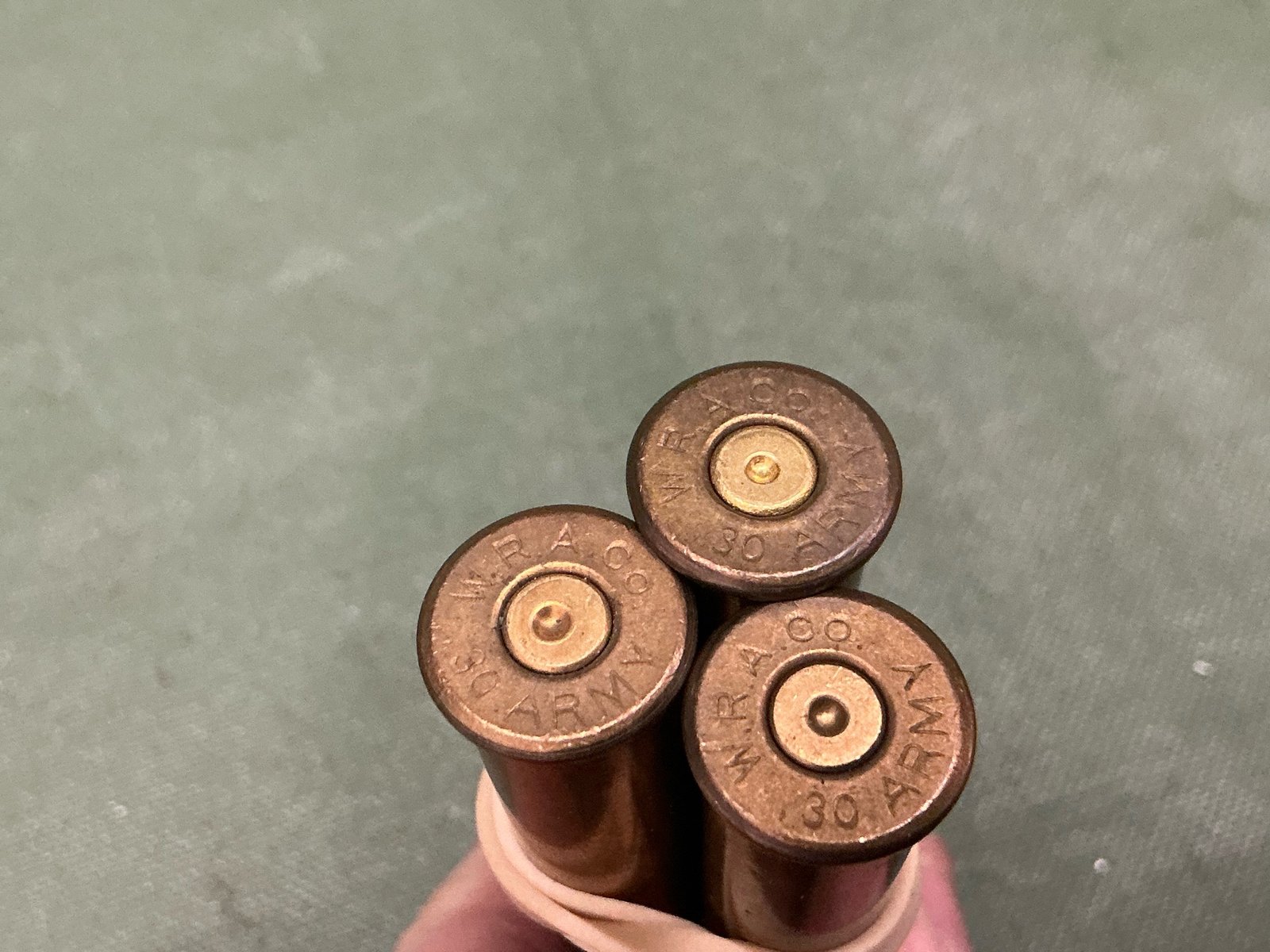 3 Inert WRA CO 30 ARMY  rounds for the 30/40 KRAG made by the Winchester Repeating Arms Company.
