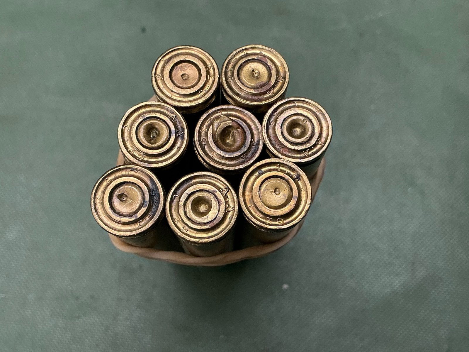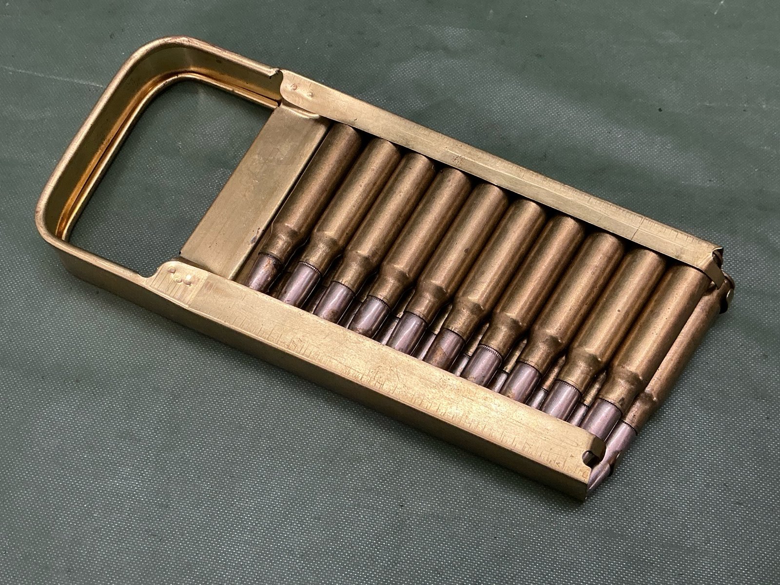 20 inert 6.5mm World War II Italian rounds for the Breda model 30 light machine gun complete with loading stripper clip all headstamps dated 1939.