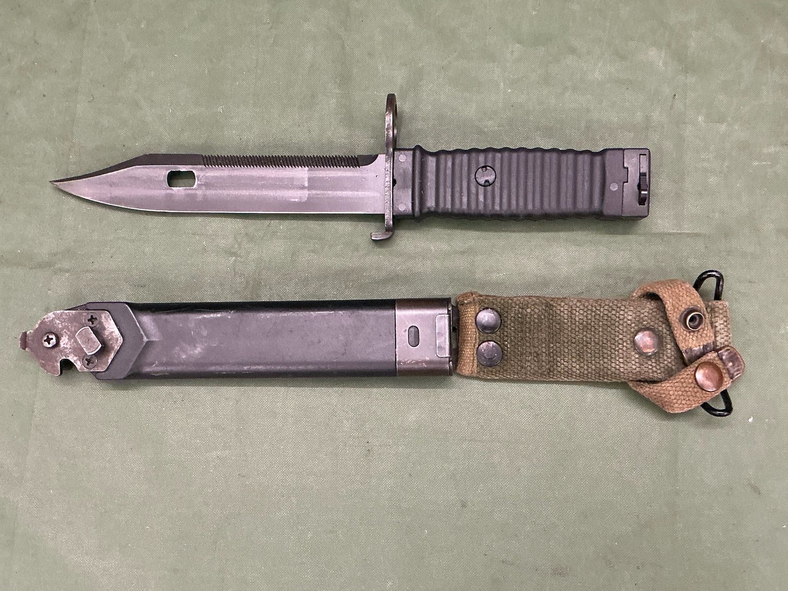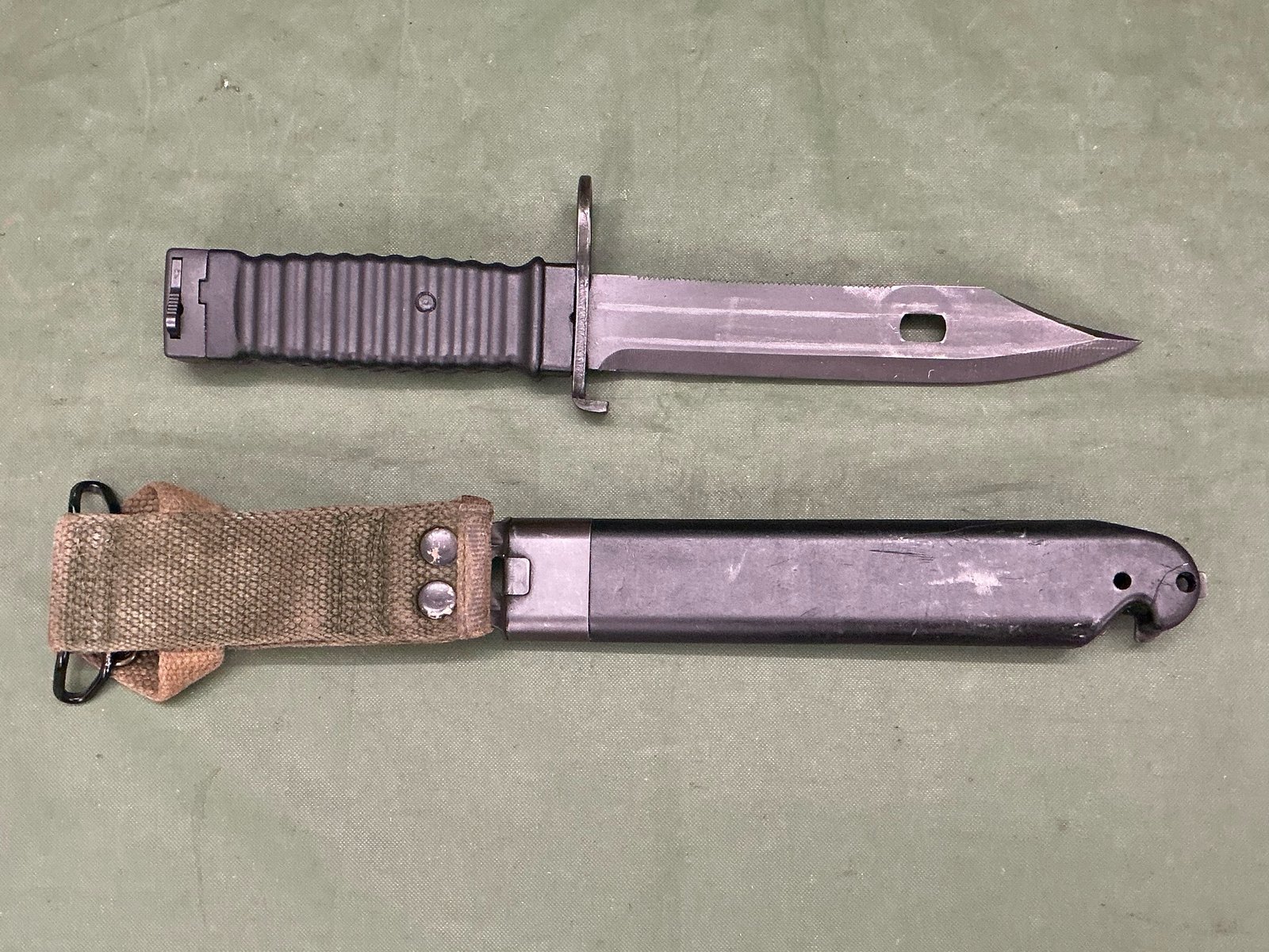 A KCB 77 M1 bayonet for the M16 assault rifle lovely condition with correct scabbard.