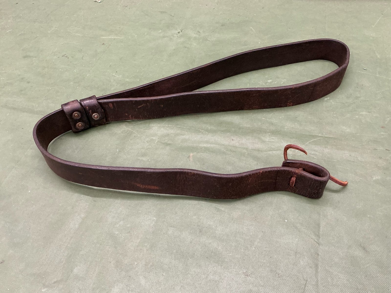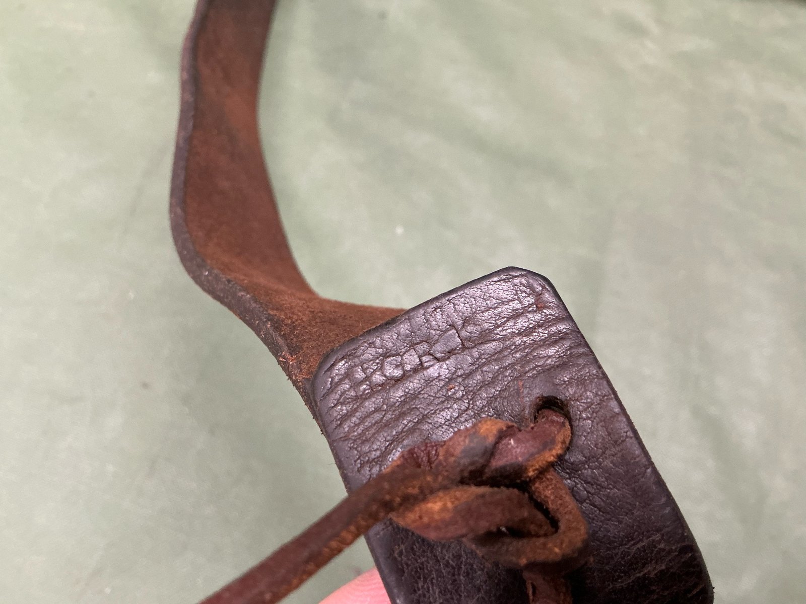 Leather Short Magazine Lee Enfield rifle sling make a marked HDR and dated either 18 or 19,It’s hard to see the stamping comes complete with leather tie and nice supple leather example.