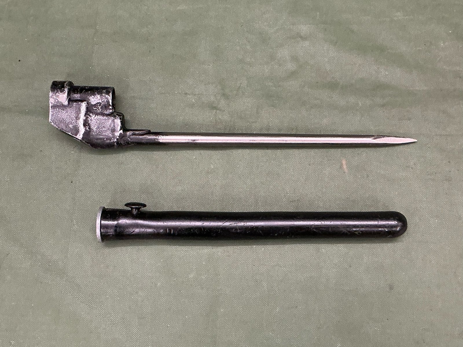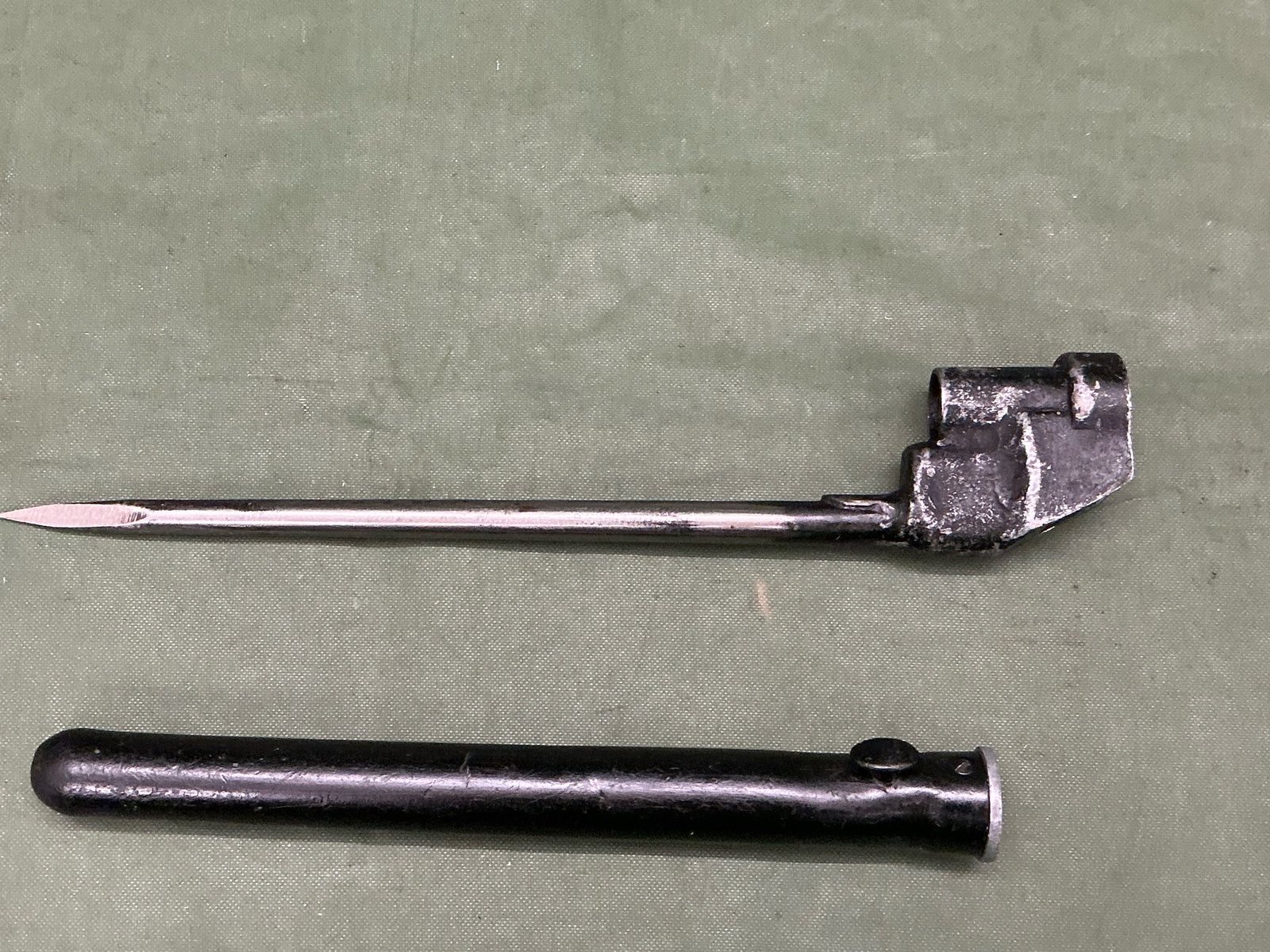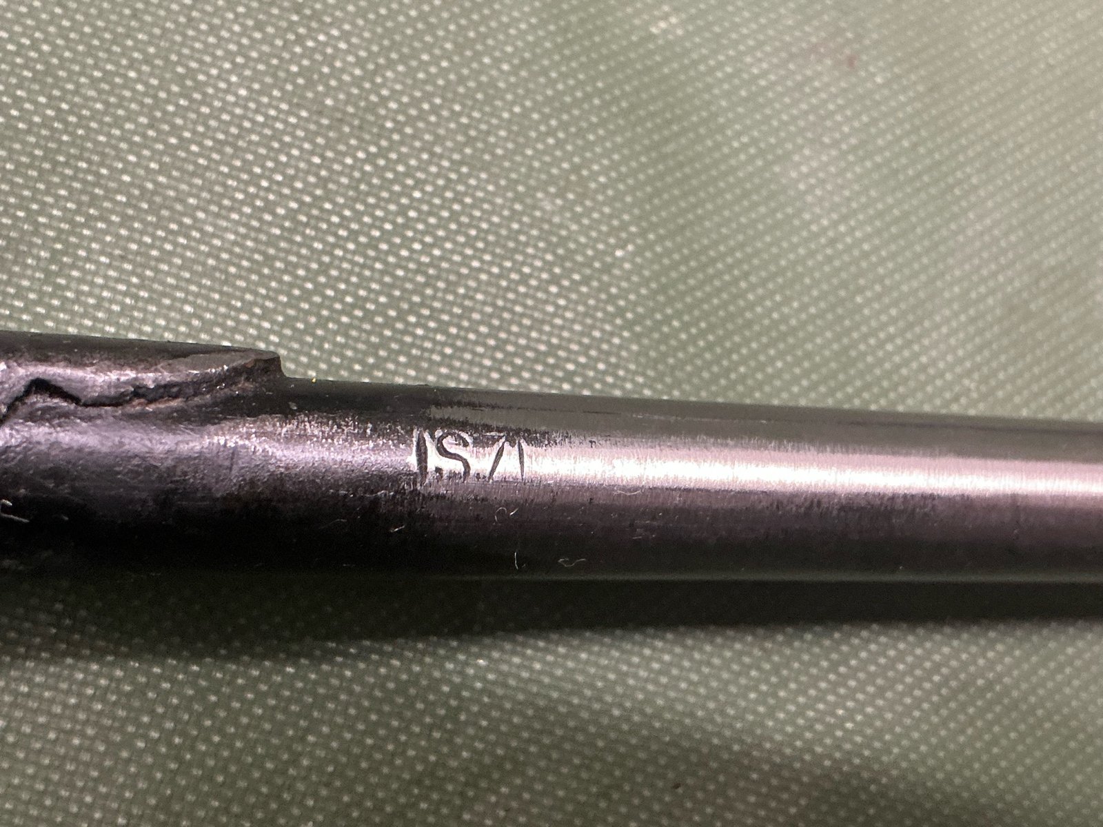 MK3 PIG STICKER BAYONET FOR THE LEE ENFIELD NO4 RIFLE WITH ITS UNIQUE SOCKET CASTING STAMPED WITH A `l` ON THE BLADE FOR THE LUCAS FACTORY ALSO ANOTHER STAMP WHICH I HAVENT SEEN BEFORE SEE PICTURE.