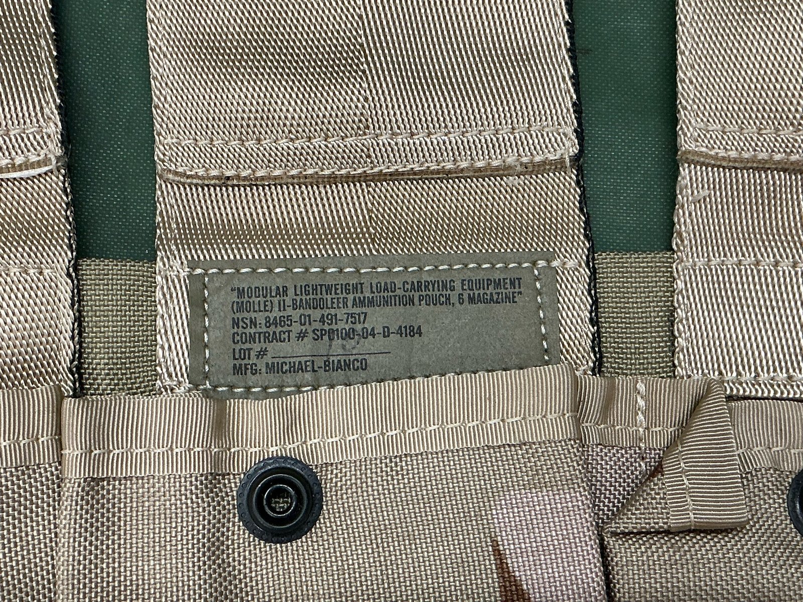 M-16 magazine bandolier to hold 6M 1630 round magazines in tricolour nylon type material dates to 2004, with label with contract and maker details,almost mint condition.