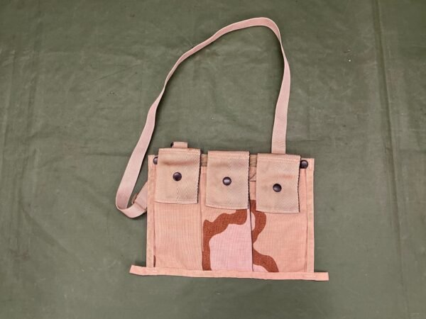 M-16 magazine bandolier to hold 6M 1630 round magazines in tricolour nylon type material dates to 2004, with label with contract and maker details,almost mint condition.