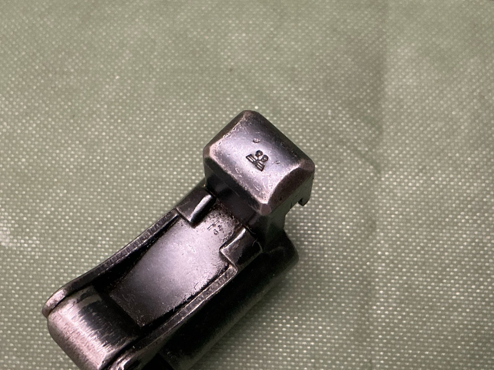 Metal Mauser muzzle cover for the Mauser 1904 contract rifle complete with the Waffenampt stamp to the top.