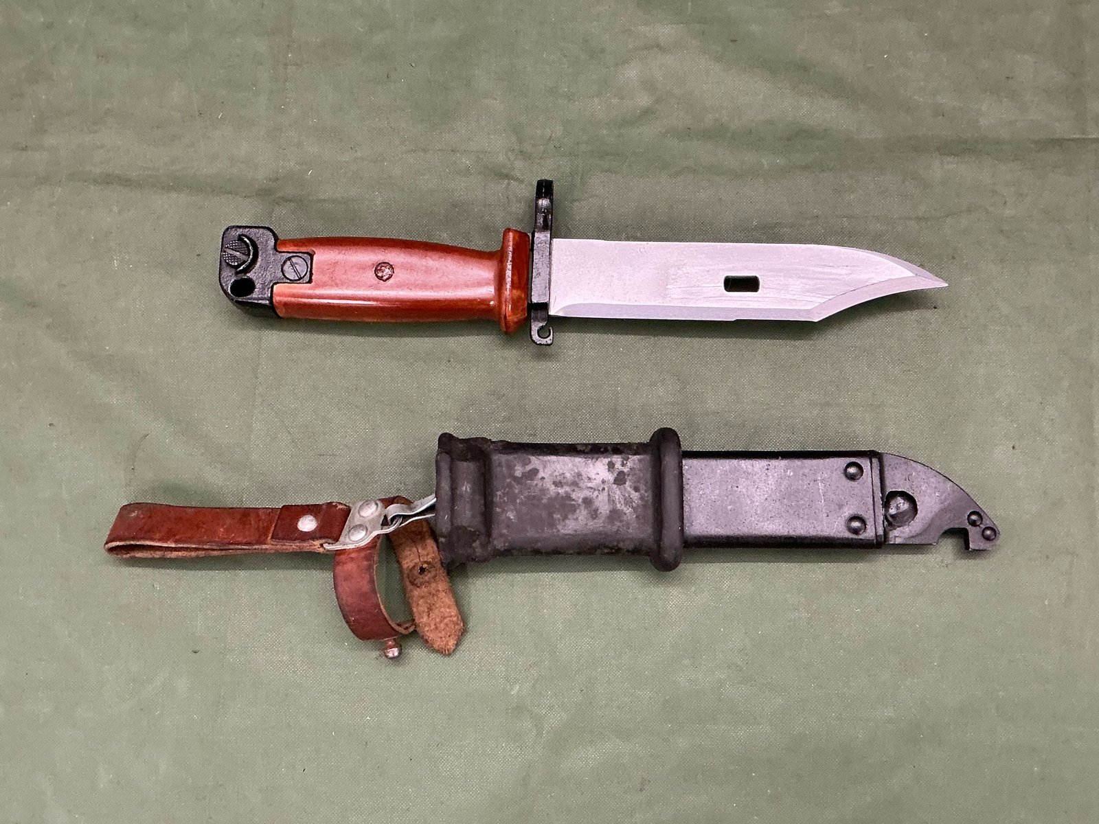 POLISH MADE TYPE 3 BAYONET FOR THE POLISH AKM VARIANT OF THE AK WITH LEATHER BELT FROG