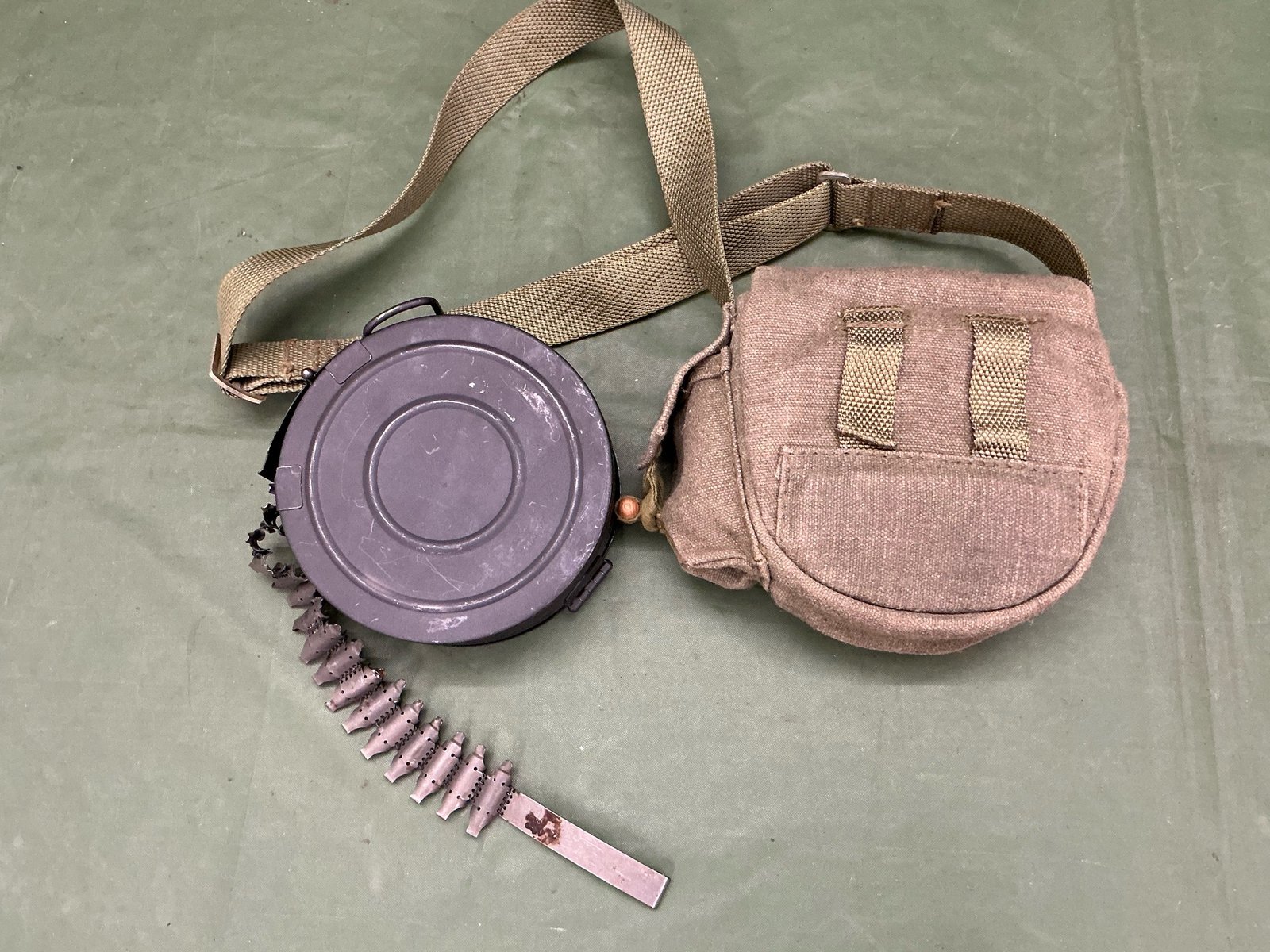 DRUM MAGAZINE FOR THE RPD IN CARRY POUCH COMPLETE WITH 50 ROUND BELT