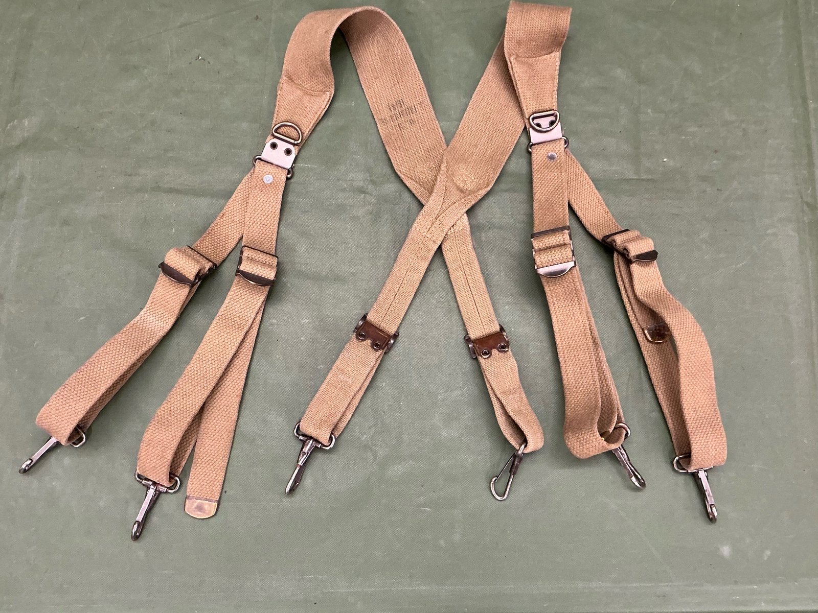 ORIGINAL WW2 AMERICAN M1936 EQUIPMENT SUSPENDERS FEINTLY MAKER MARKED S.FROEHILCH .CO. AND DATED 1941 ALL BUCKLE CLASPS AND PRESENT