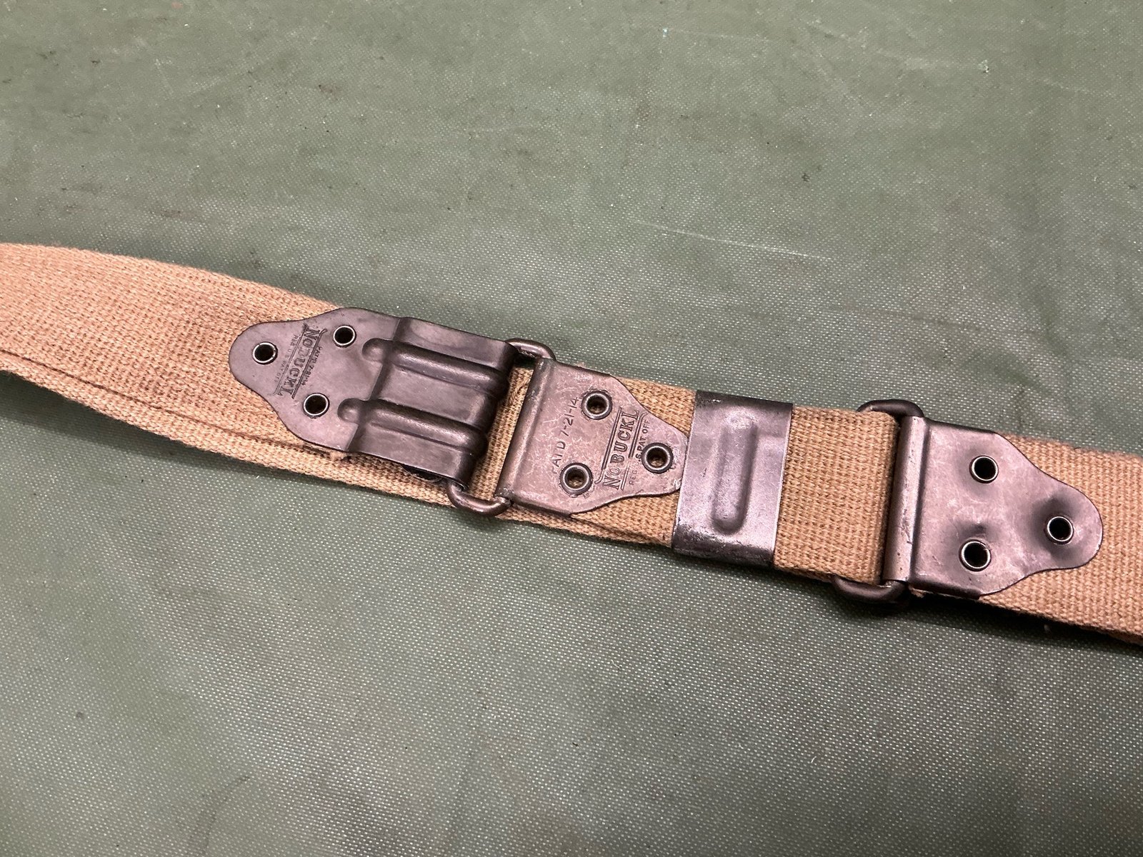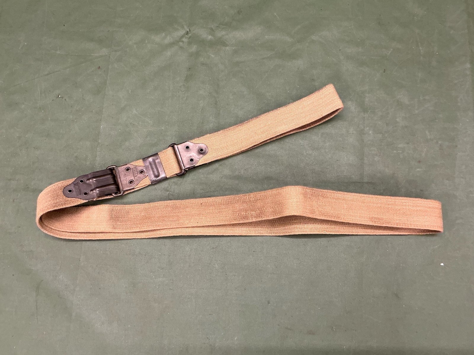 World War II American Thompson submachine gun sling 100% original World War II made by the NOBUCKL company, almost mint condition a lovely item to find.