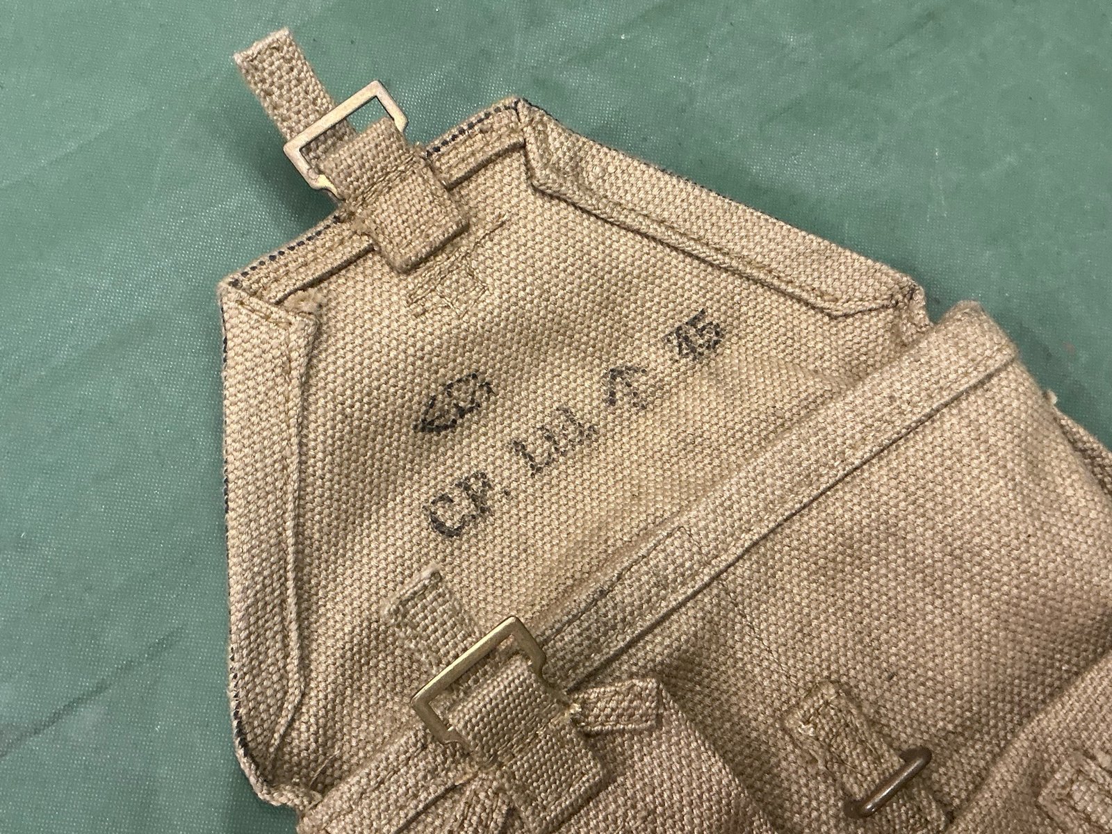 World War II spare barrel bag for the Bren machine gun make a marked CP Limited with a broad arrow and dated 1945 in mint unissued condition.