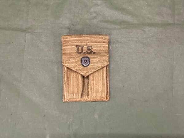 ORIGINAL COLT 45 1911A1 DOUBLE MAGAZINE POUCH DATED 1942 MAKER MARKED `HOFF` LOVELY ALMOST MINT CONDITION