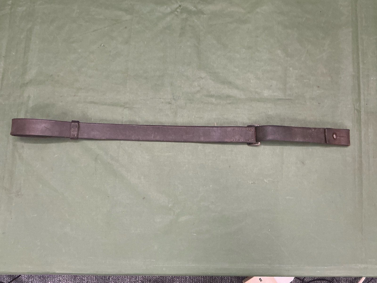 Original World War II German leather sling for the MP 34 submachine gun nice supple leather with stitching intact complete with correct steel stud.